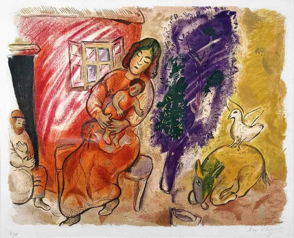 Chagall's painting invites us to step into the colorful world of the mother-child bond. It reflects the divine love that sustains and nurtures life, encouraging us to recognize the holiness in our relationships and to cherish the gift of life.